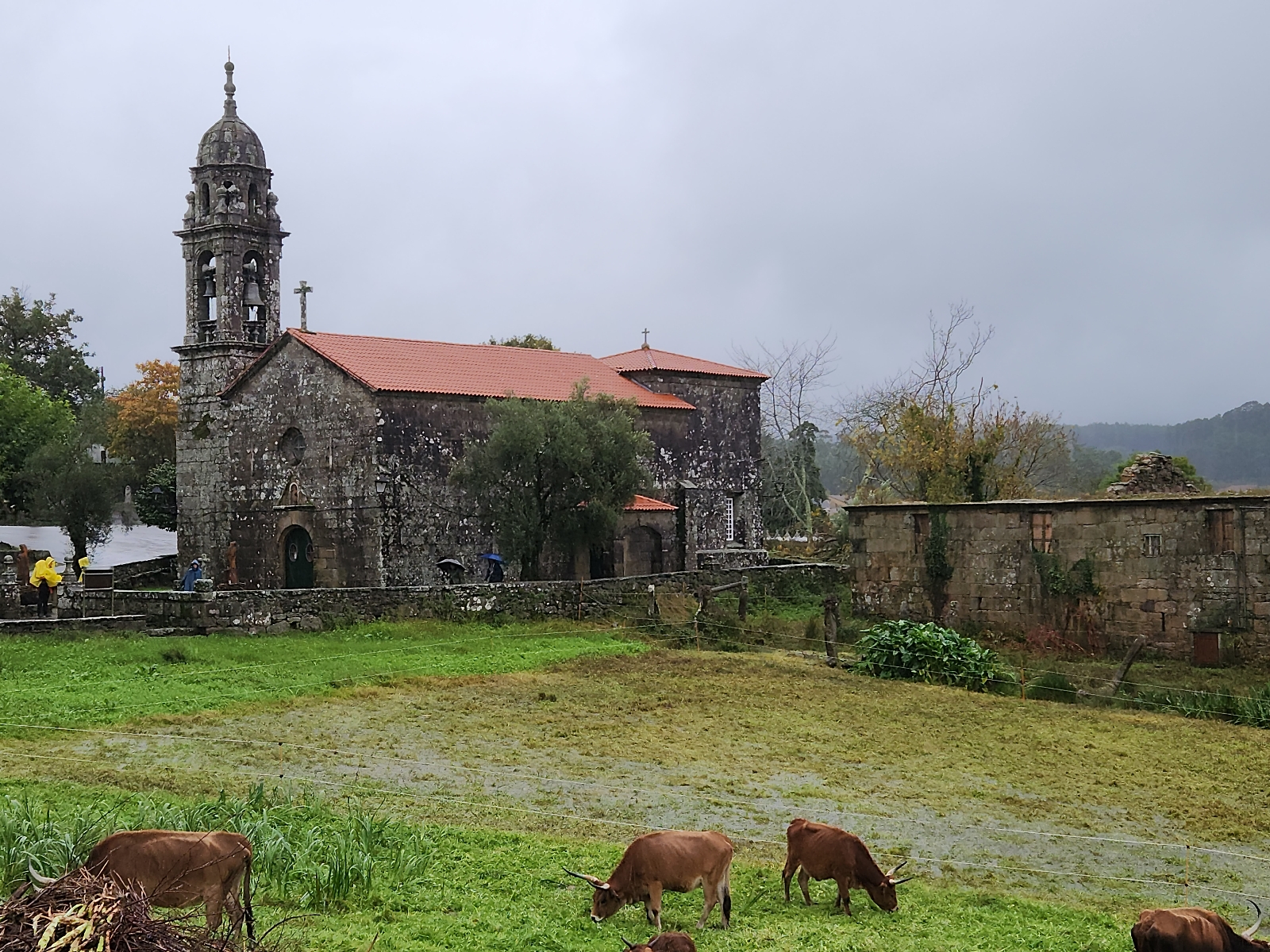 It seems incredible, but less than a month ago I did a post titled "It's Hot".  How things have changed.   Since leaving Pontevedra, indeed at times before that, we have had rain falling in torrents.  This morning we left after the sun, if it could be seen, had risen, but for over an hour we walked in almost pre dawn gloom.